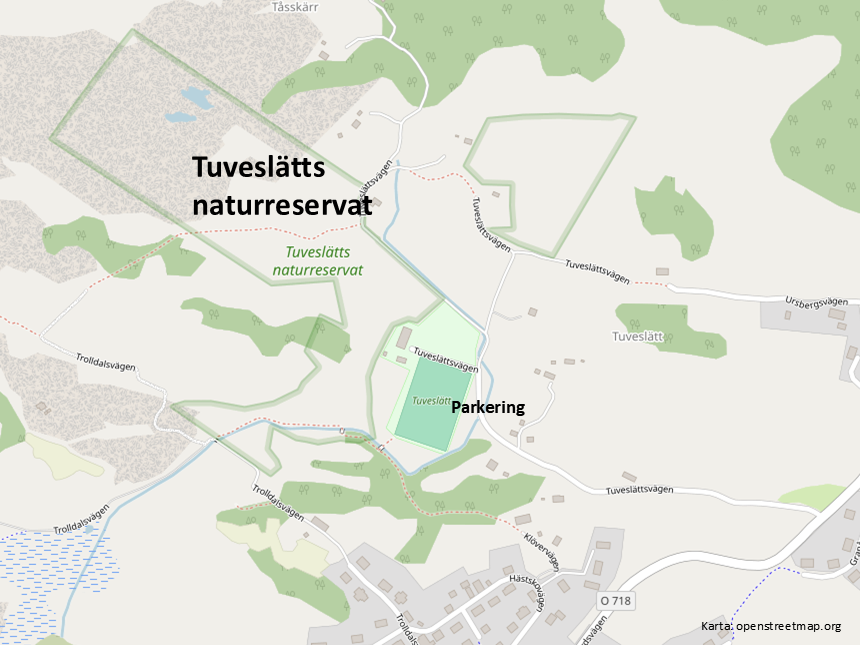Efter ca 2 km, tag höger Tuveslättsvägen mot Fotbollsplan/idrottplats/vandringsled